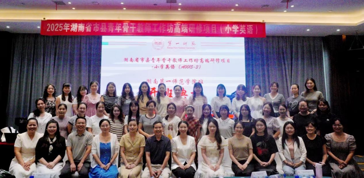9月13日上午8时30分,由我院承办的湖南省市县“国培计划(2025)”骨干教师工作坊高端研修(小学英语)项目在君都假日酒店开班。此次研修以“提升教师专业素养”为核心目标,旨在为湖南省小学英语教育注入创新动能,推动区域教育资源均衡分配,为基层英语教学质量升级奠定坚实基础。太阳成集团122cc副院长陈钰,湖南省教育督导评估专家刘明东教授,湖南省新时代名师工作室主持人王黎香老师,项目班主任刘洁文,梁薇及管理团队成员共同出席了开班典礼。
