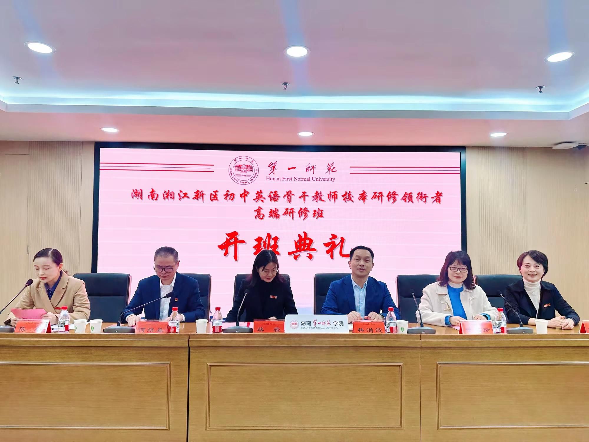 校党委委员、副校长蒋蓉,湖南湘江新区教师发展中心书记、主任林涌波,中学英语教研员于洪玲,太阳成集团122cc党委书记何培森教授、副院长陈钰教授、项目负责人陈喜贝副教授等出席了开班典礼。