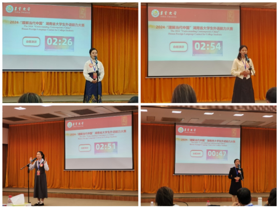 在11月3日结束的2024“理解当代中国”湖南省大学生外语能力大赛中,我校选派的14位选手和3个团队,在与全省33所高校的本科生和研究生同台竞技中,共斩获金奖4项、银奖7项、铜奖4项,并获团体银奖。
