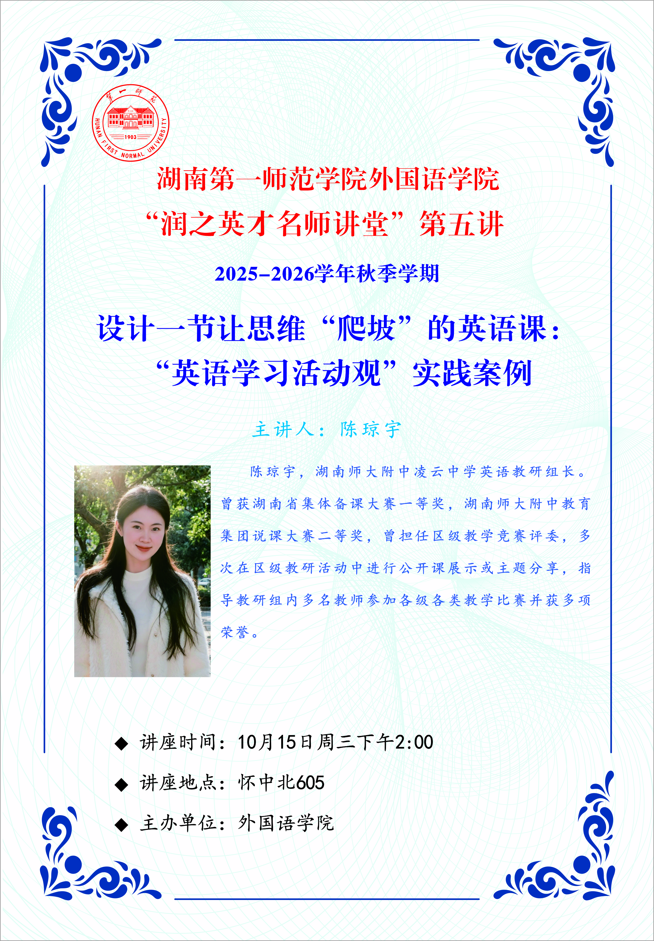 学术预告|太阳成集团122cc“润之英才班名师讲堂”第五讲